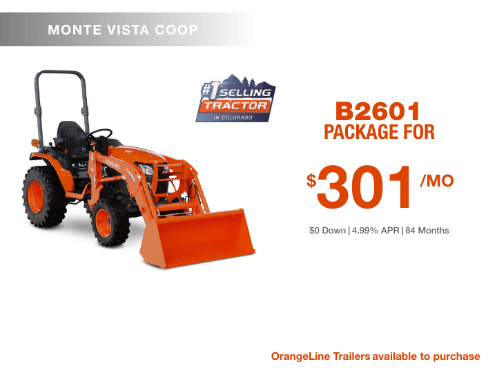 If you're looking for quality equipment and exceptional services provided by trained experts, you've come to the right place. At Monte Vista COOP, we pride ourselves on matching each customer's unique needs with the Kubota that will serve them best. We're glad you're here, where you can check out our inventory, order parts, schedule a service appointment or simply give us a call at 719-852-5565 and let us know how we can help you.